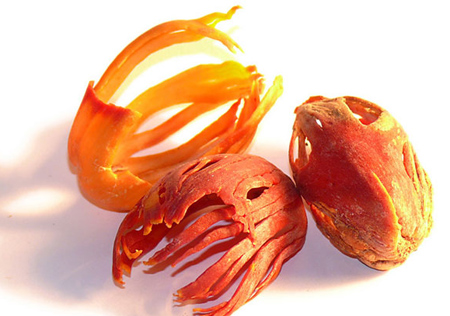 A szerecsendió-designt bármelyik iparművész megirigyelhetné. Mikor a barackhoz hasonló gyümölcs megérik, kettéhasad és héja alól kivillan egy tűzpiros hálóval beborított, barna mag. Ezt a labdacsot a napon szárítják, lefejtik róla a piros hálót – amit szerecsendió-virág néven szintén fogyasztanak – majd különböző tekerős vagy tologatós reszelőkkel reszelik az ételbe.